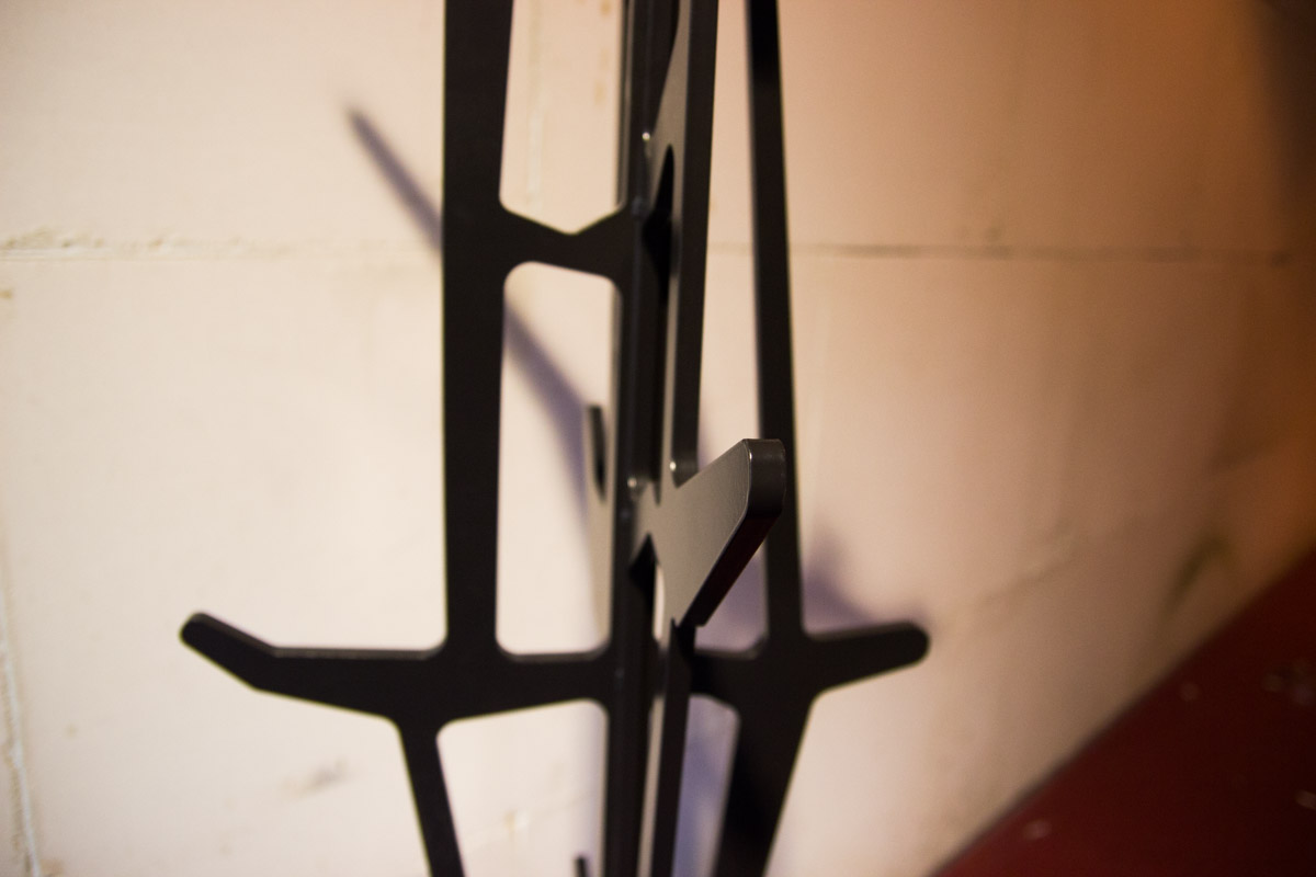 De kapstok is gemaakt uit staal en heeft een zwarte poedercoating.