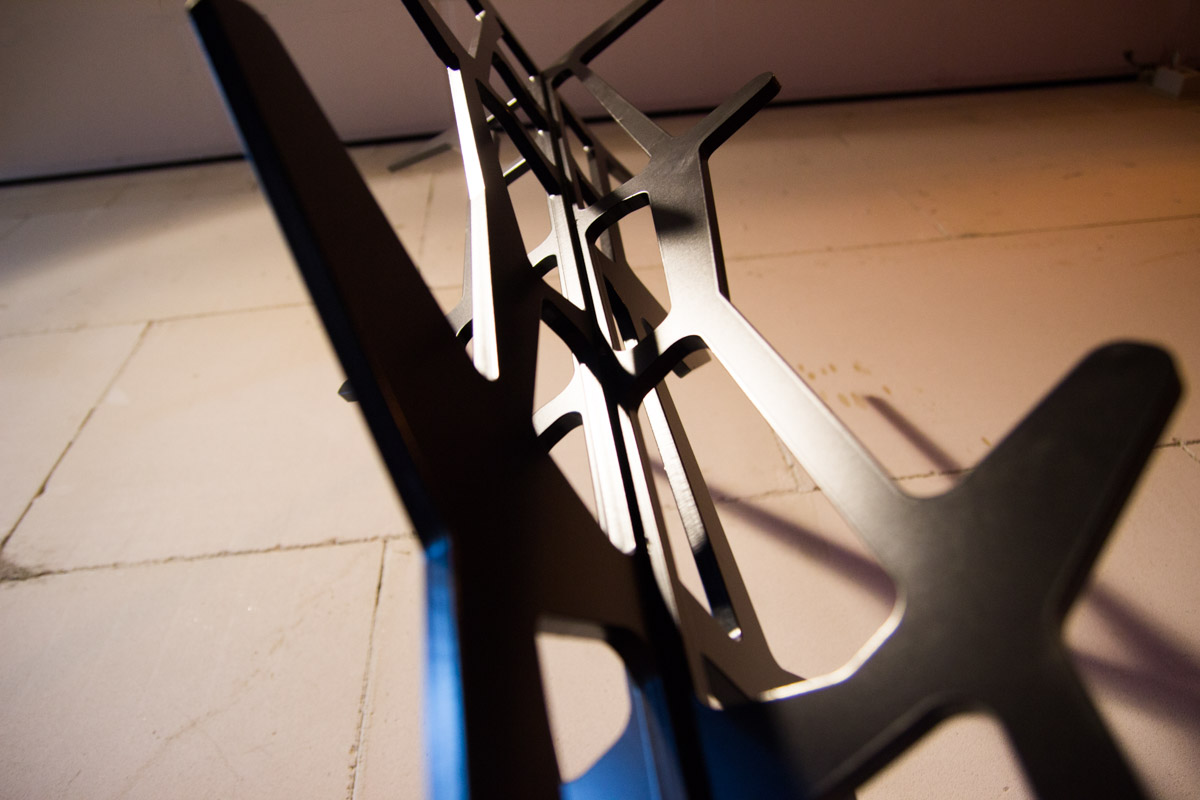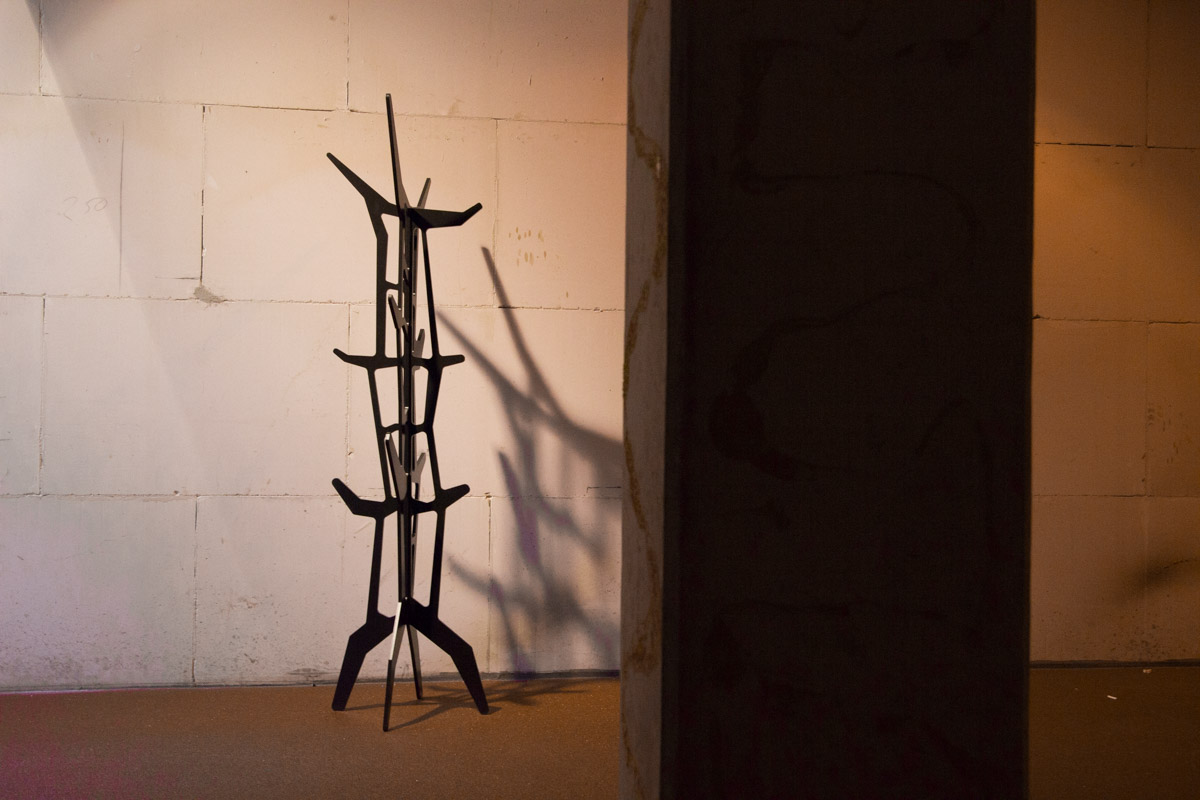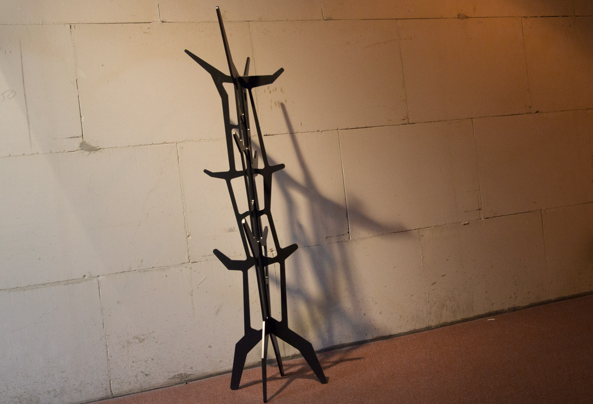 De kapstok is gemaakt uit staal en heeft een zwarte poedercoating.