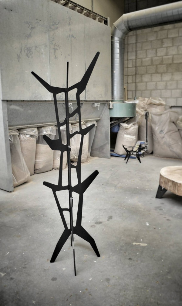 Een kapstok! Dat is wat het is! Een kapstok die geïnspireerd is op het materiaal waarmee we dagelijks werken; Bomen!