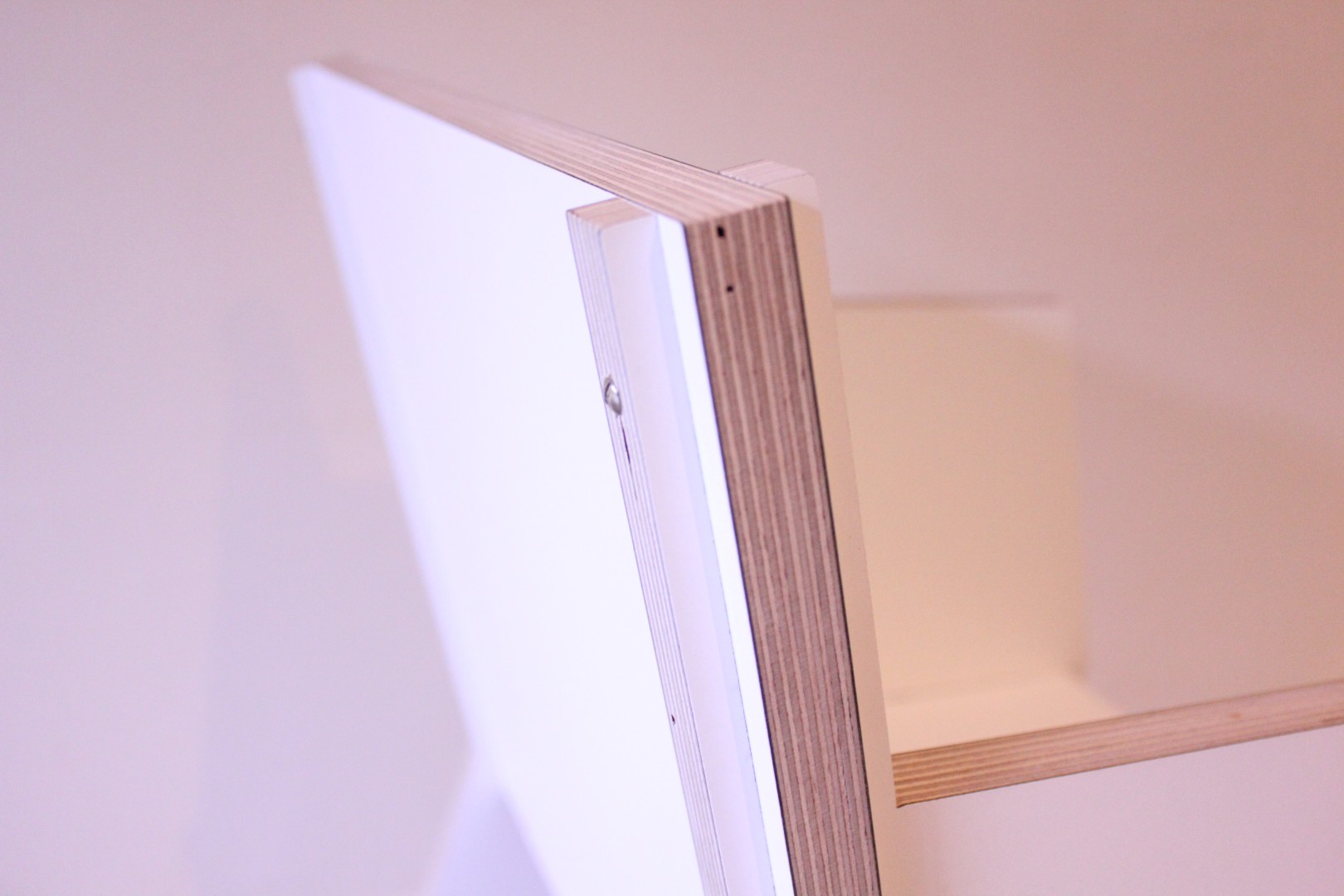 - Berken multiplex met blanke laklaag of met witte HPL toplaag