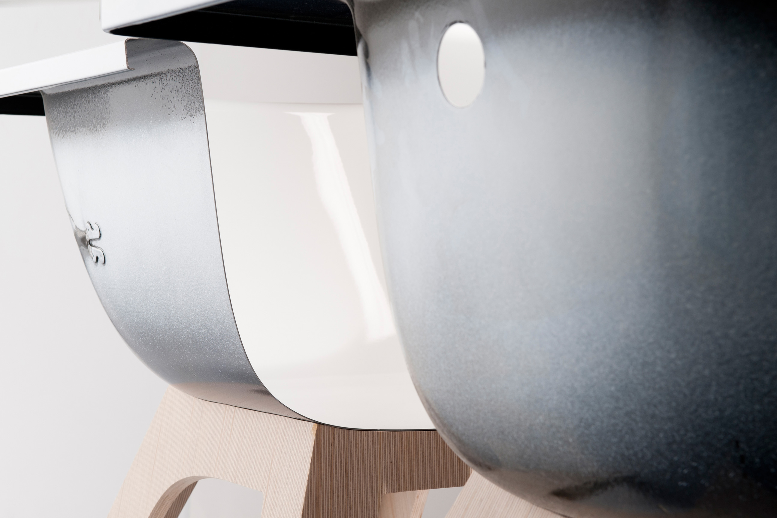 Zonder twijfel een van de opvallendste producten in onze collectie! Deze stoel uitgevoerd in berken multiplex gecombineerd met plaatstaal, ofwel een halve badkuip op multiplex poten, is een meubel waar over gepraat zal worden, maar bovenal ook nog eens heerlijk zit. Voor iedereen die houdt van een tikkie eigenwijs!