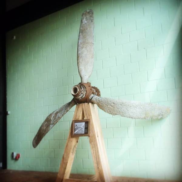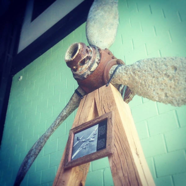 Voor deze opdracht vonden we een grote propellor van een bommenwerper. We besloten deze letterlijk op een voetstuk te plaatsen gemaakt, dat we maakte uit eiken balken.