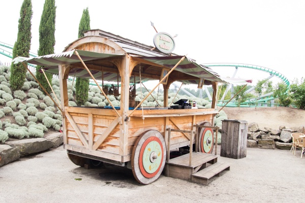 Pal naast de houten achtbaan Troy mochten we een mobiele cateringwagen ontwerpen en bouwen.