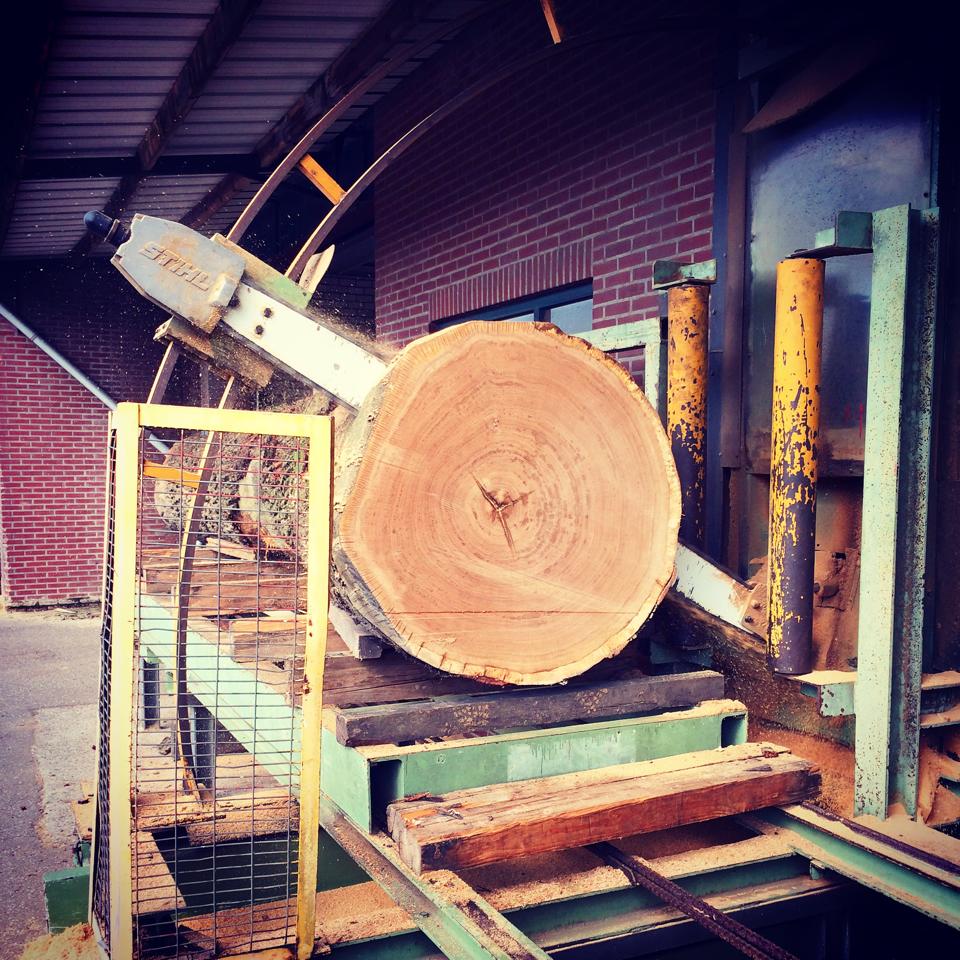 Lomp en toch verfijnd, de bijzondere zaagmachine voor onze schijven eikenhout.